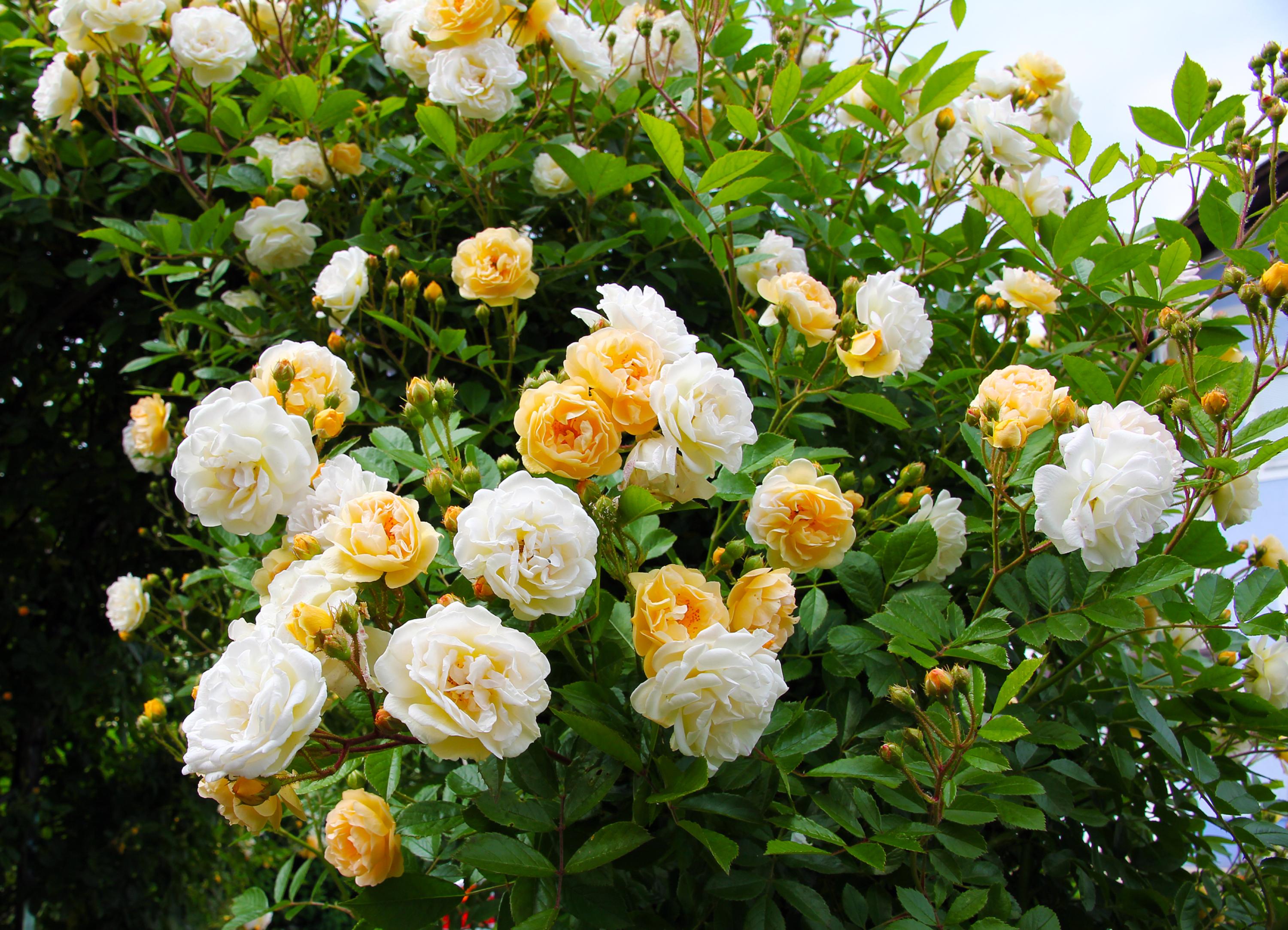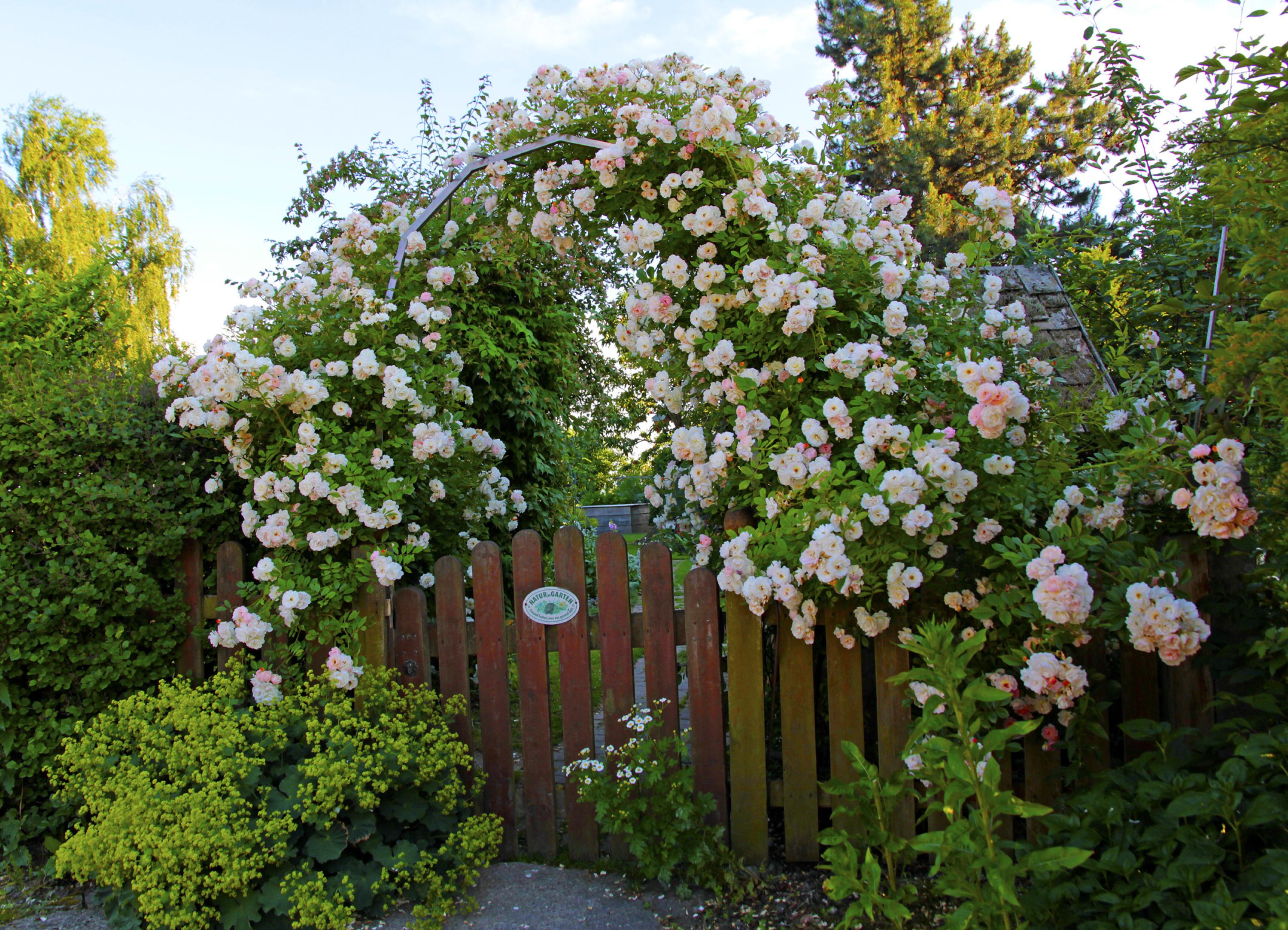 Die Ramblerrose Lykkefund bringt natürliche Schönheit und üppige Blütenfülle in den Garten. Ihre cremeweißen, leicht duftenden Blüten erscheinen in dichten Büscheln und verwandeln Bögen, Pergolen oder alte Bäume im Juni in ein wahres Blütenmeer.