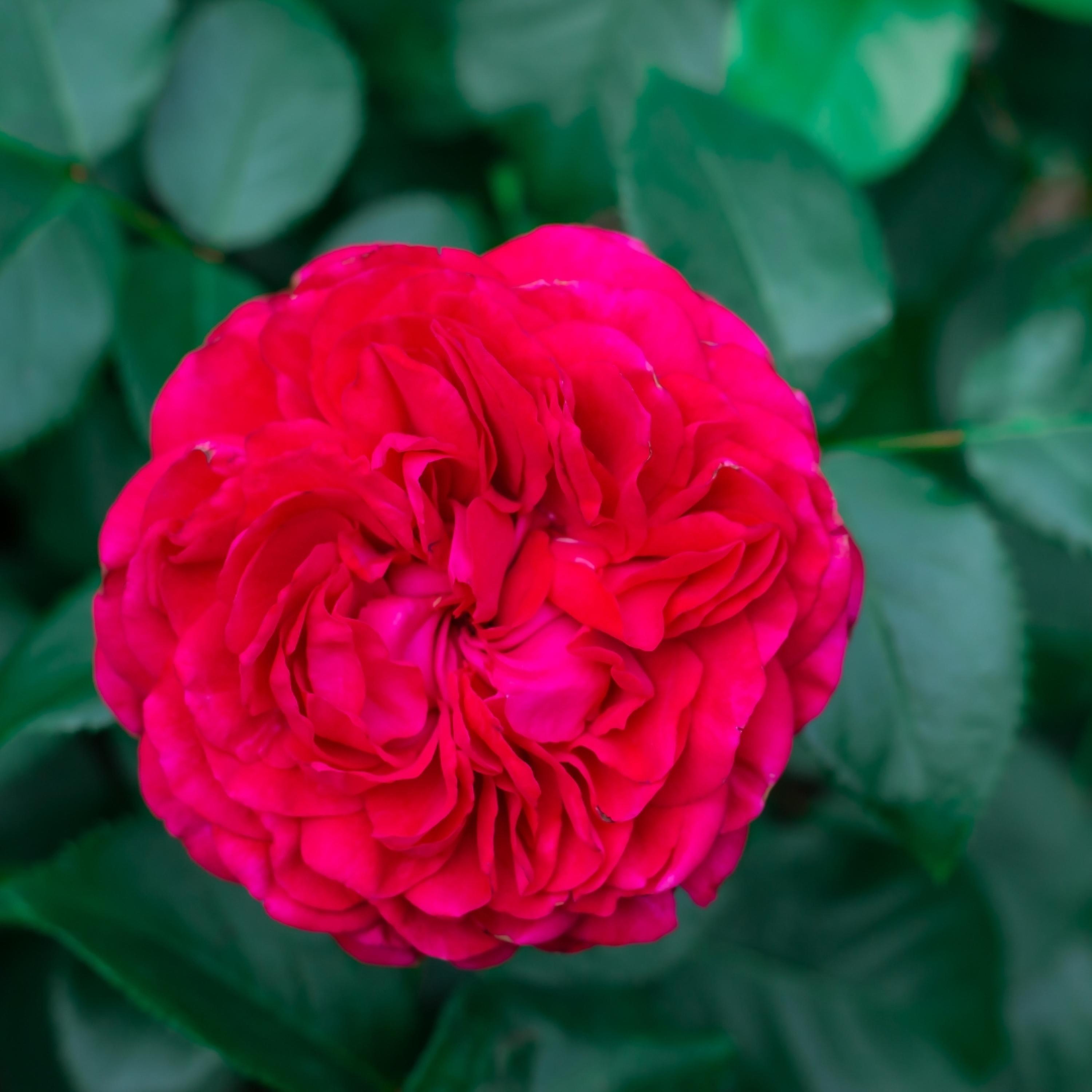 Diese Strauchrose ist ein echtes Schmuckstück im Garten: Ihre perfekt geformten, stark gefüllten Blüten erscheinen in einem eleganten, samtigen Dunkelrot – ein Anblick, der an historische Rosen erinnert und dennoch modern wirkt.