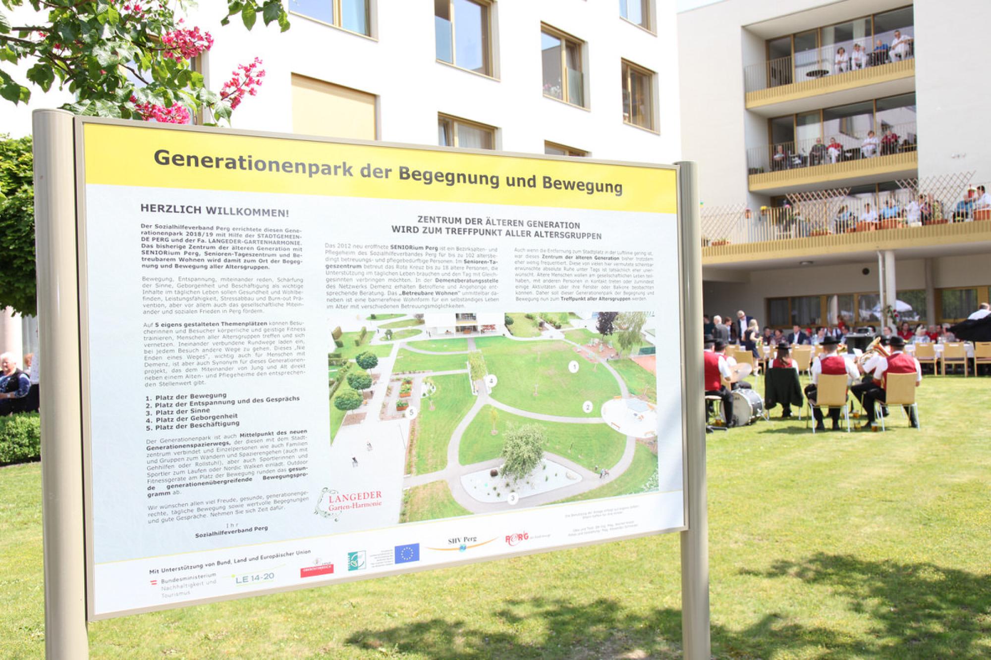 25 Jahre Langeder Gartenharmonie - ein wunderbares Jubiläum - ein Abschnitt, in dem wir als Unternehmen viel erreicht haben und auf den wir sehr stolz sind. Ein Anlass, der uns mit unseren Mitarbeitern überlegen ließ, wie wir ihm begegnen wollen. Und es waren unsere Mitarbeiter, die den Vorschlag lieferten, auf eine große Feier zu verzichten und das Engagement statt dessen lieber in ein soziales Projekt einfließen zu lassen. Gesagt, getan! Gemeinsam mit dem Sozialhilfeverband Perg entstand die Idee, die bislang ungenutzte Fläche rund um das Bezirksalten- und Pflegeheim SENIORium sowie dem 'Betreubaren Wohnen' in einen Park der Bewegung und Begegnung umzufunktionieren. Nicht nur, dass die dort lebenden älteren Menschen eine Abwechslung zu ihrem isolierten Dasein suchen, gibt es in Perg kaum verfügbare Parkanlagen, die der aktiven Bewegung und der Erholung dienen.