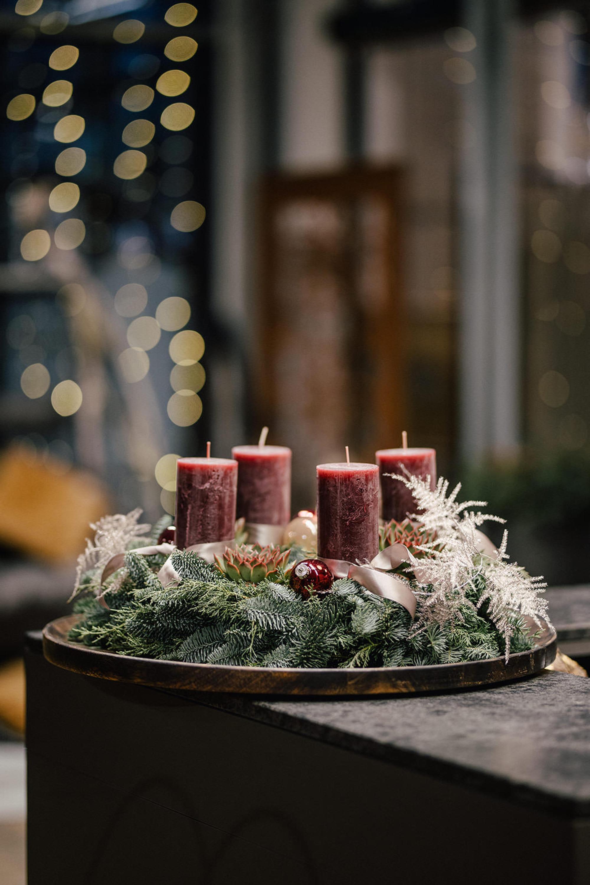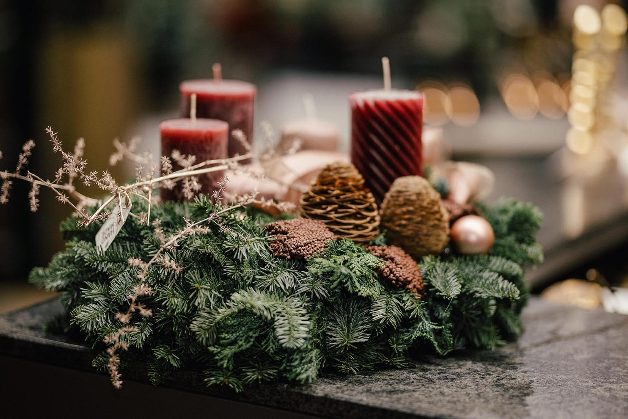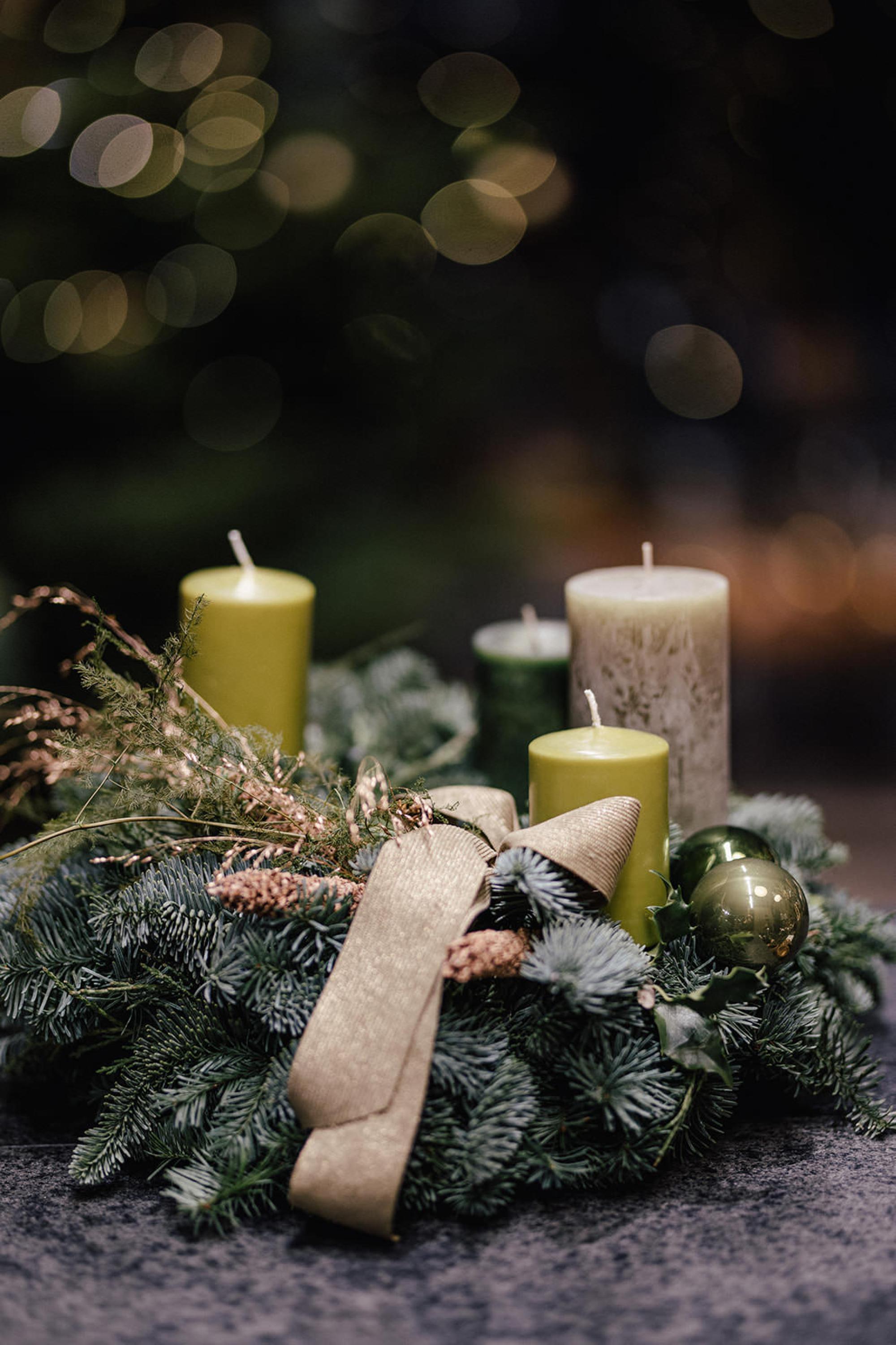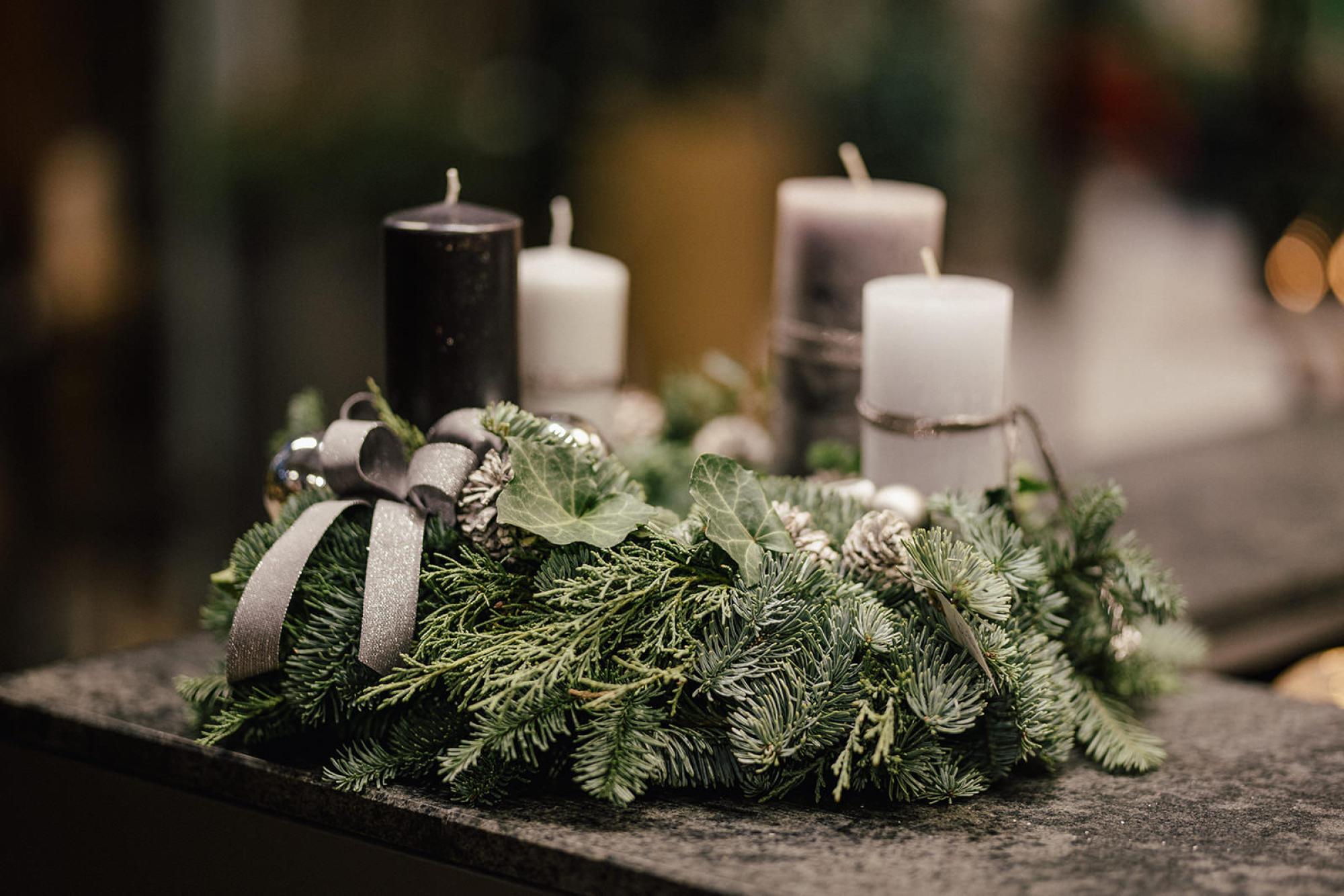 … und wir gestalten den perfekten Adventskranz dafür. Denn auch dieser bringt Licht und weihnachtliche Vorfreude ins Haus. Woche für Woche wird eine weitere Kerze erleuchtet. Nach und nach wird es heller – bis mit Weihnachten auch die Tage selbst wieder heller werden. Erfreuen Sie sich an unseren klassisch-bewährten, neu-interpretierten oder modern-inszenierten Adventskranz- Kreationen aus unserer hauseigenen Naturwerkstatt.