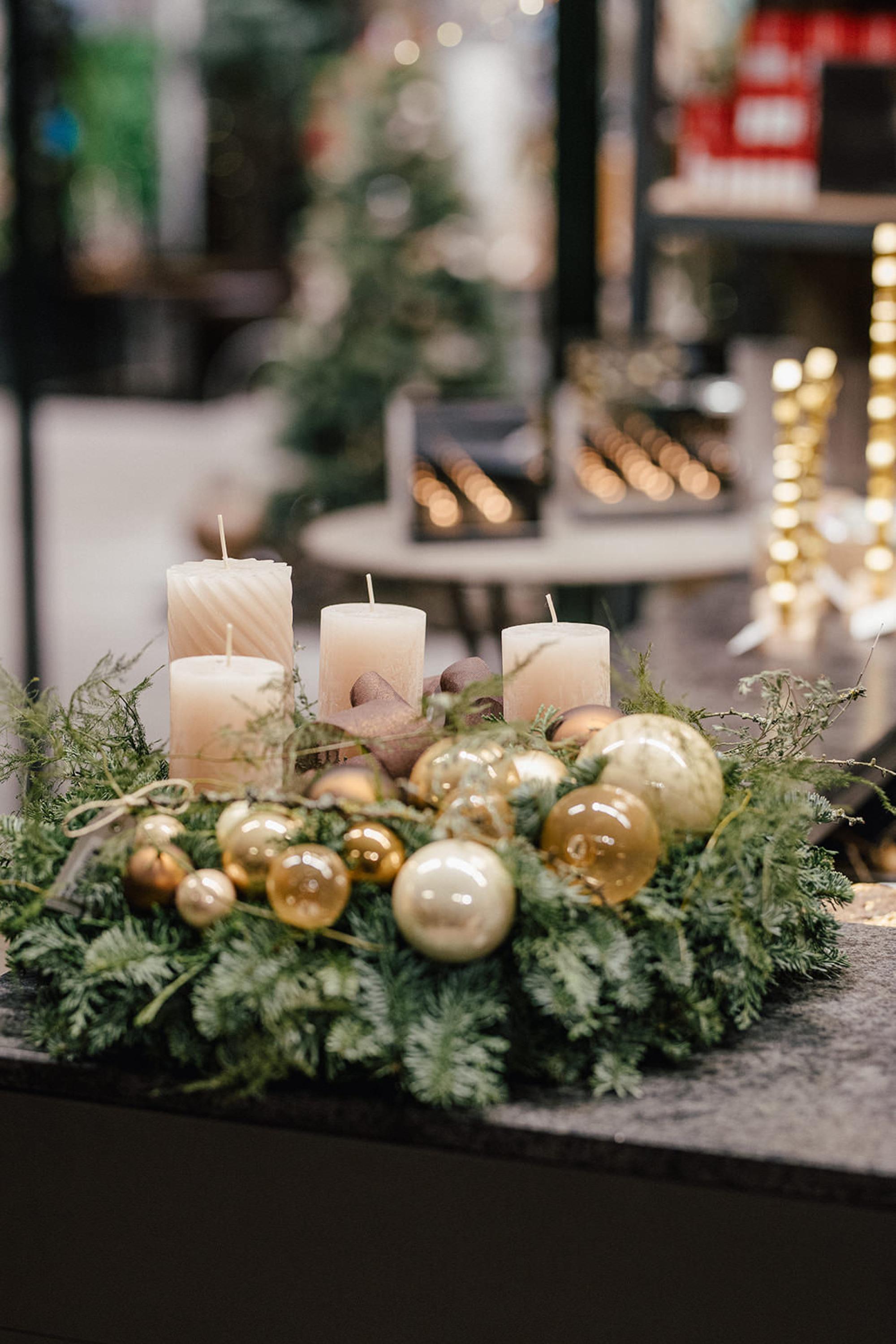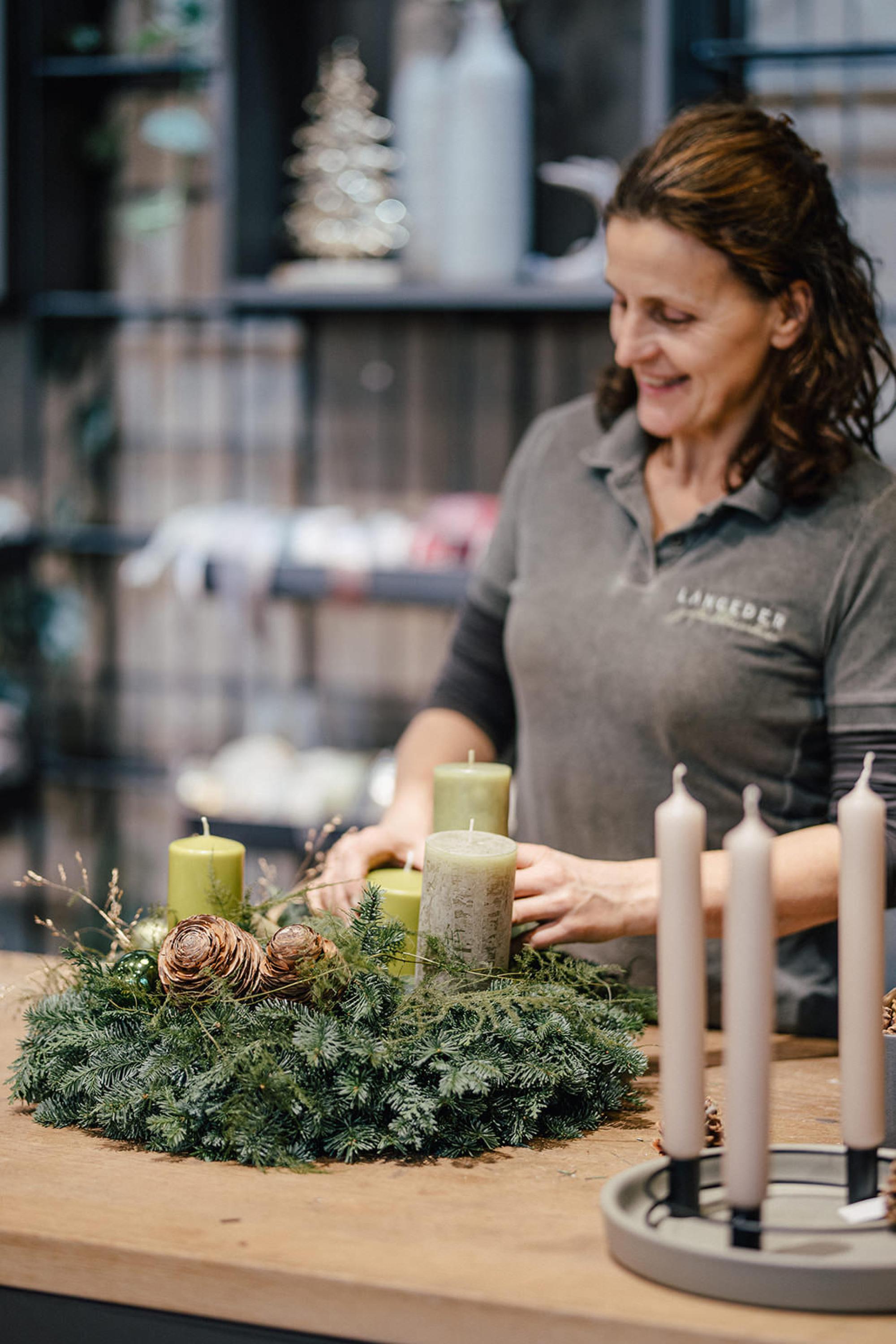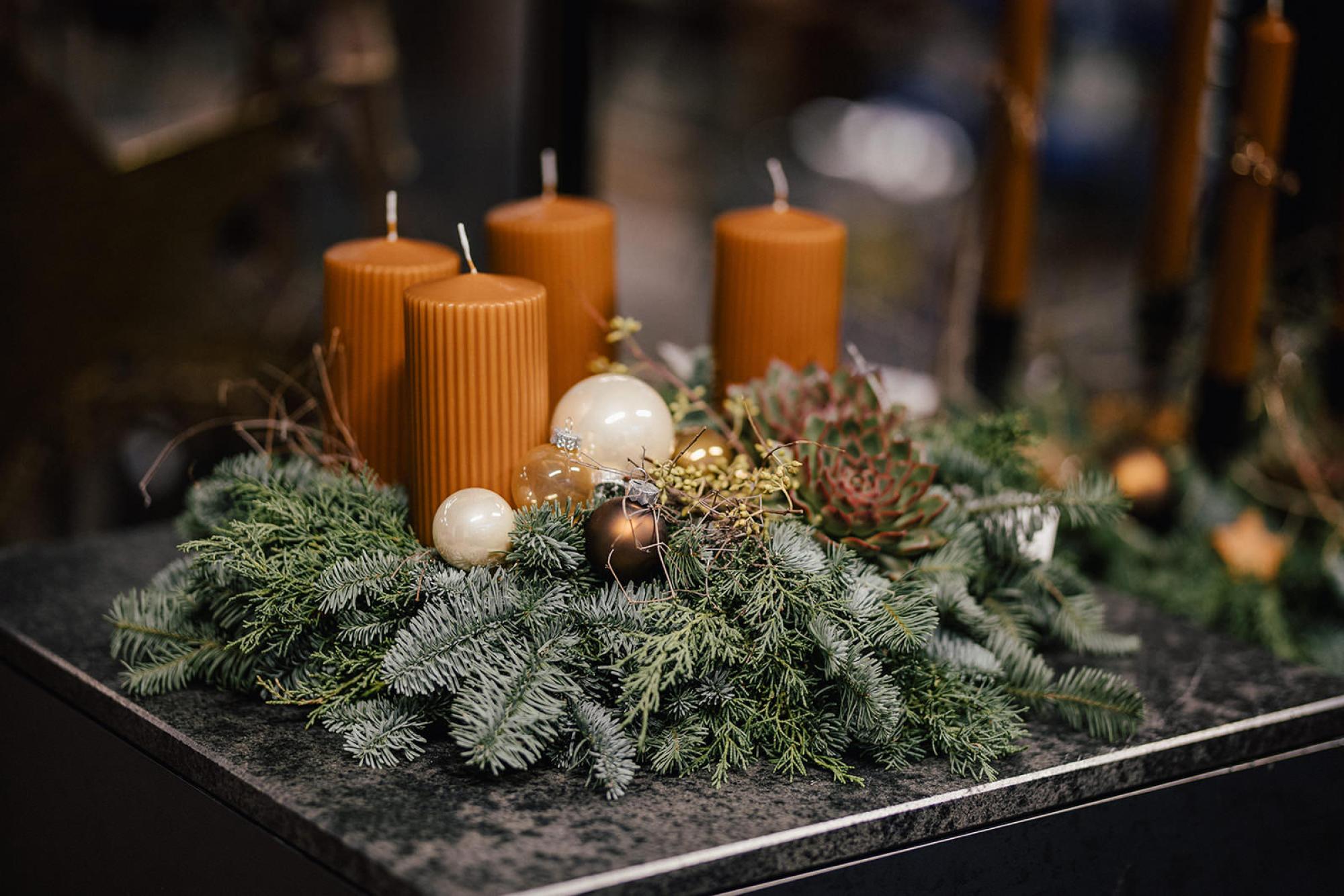… und wir gestalten den perfekten Adventskranz dafür. Denn auch dieser bringt Licht und weihnachtliche Vorfreude ins Haus. Woche für Woche wird eine weitere Kerze erleuchtet. Nach und nach wird es heller – bis mit Weihnachten auch die Tage selbst wieder heller werden. Erfreuen Sie sich an unseren klassisch-bewährten, neu-interpretierten oder modern-inszenierten Adventskranz- Kreationen aus unserer hauseigenen Naturwerkstatt.