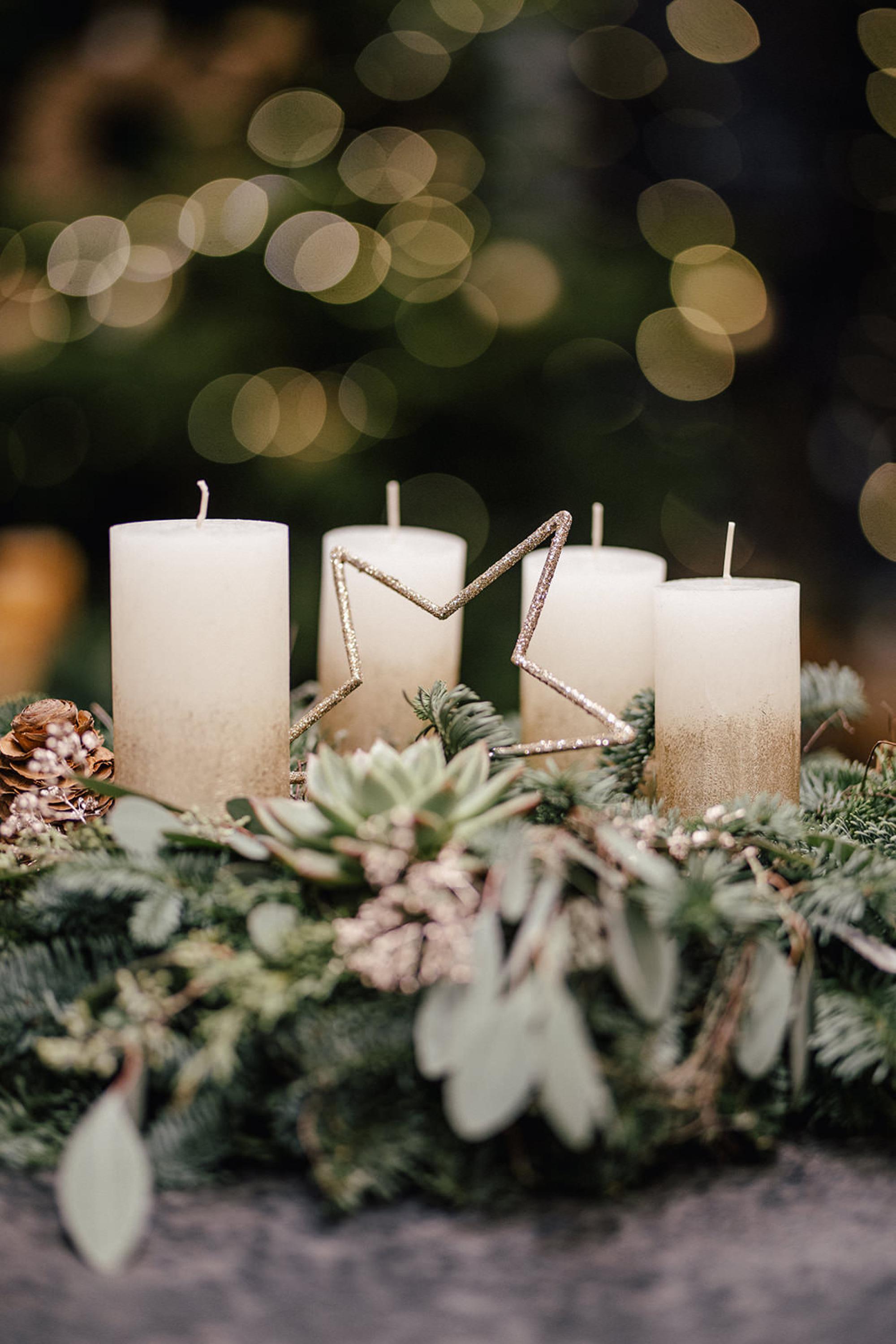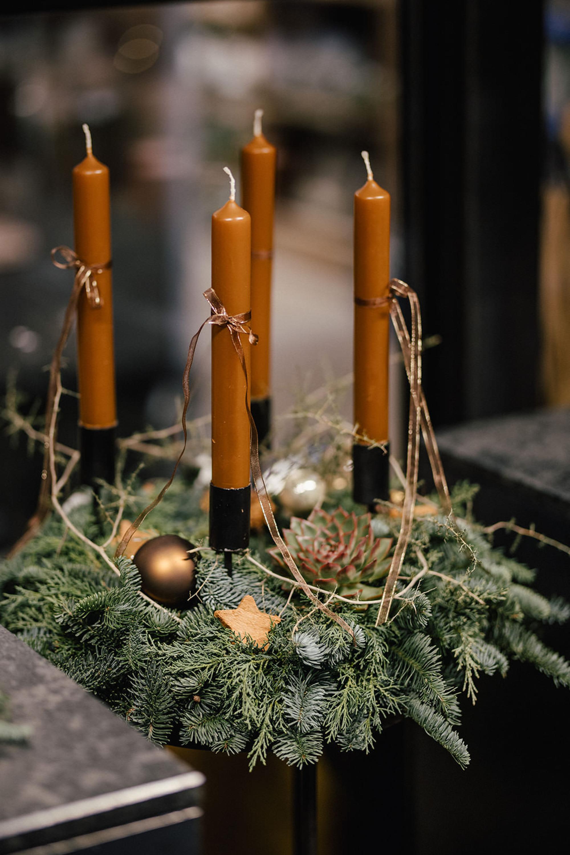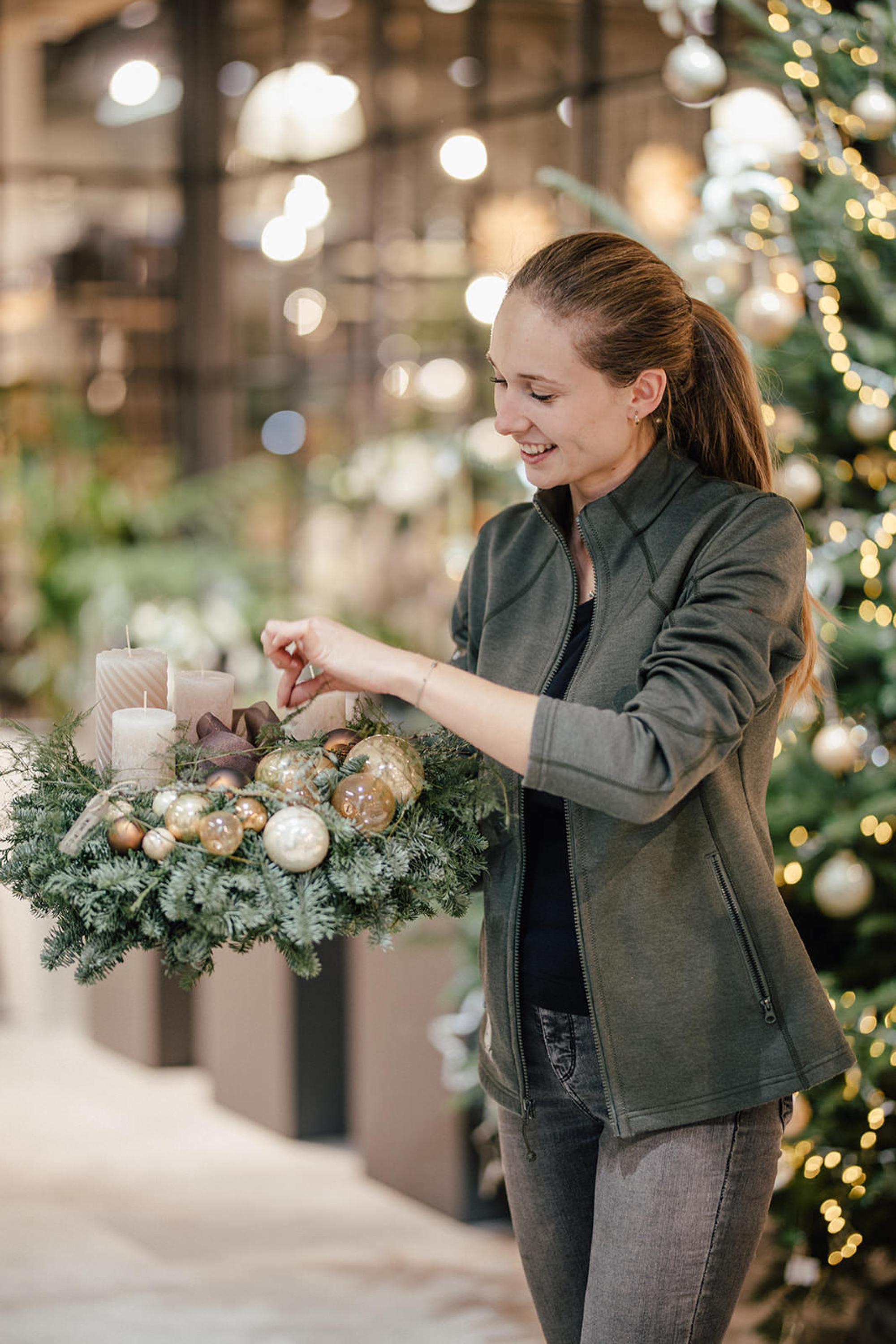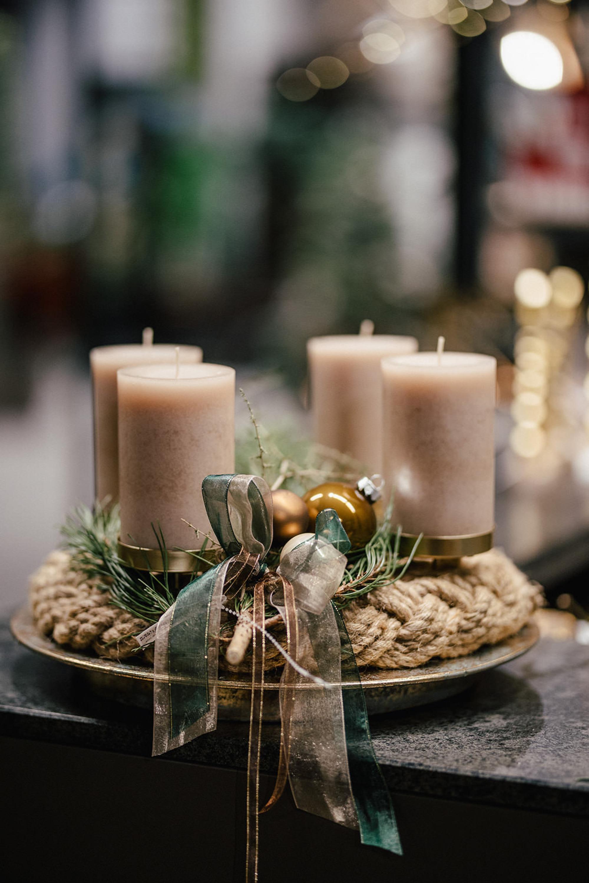 … und wir gestalten den perfekten Adventskranz dafür. Denn auch dieser bringt Licht und weihnachtliche Vorfreude ins Haus. Woche für Woche wird eine weitere Kerze erleuchtet. Nach und nach wird es heller – bis mit Weihnachten auch die Tage selbst wieder heller werden. Erfreuen Sie sich an unseren klassisch-bewährten, neu-interpretierten oder modern-inszenierten Adventskranz- Kreationen aus unserer hauseigenen Naturwerkstatt.