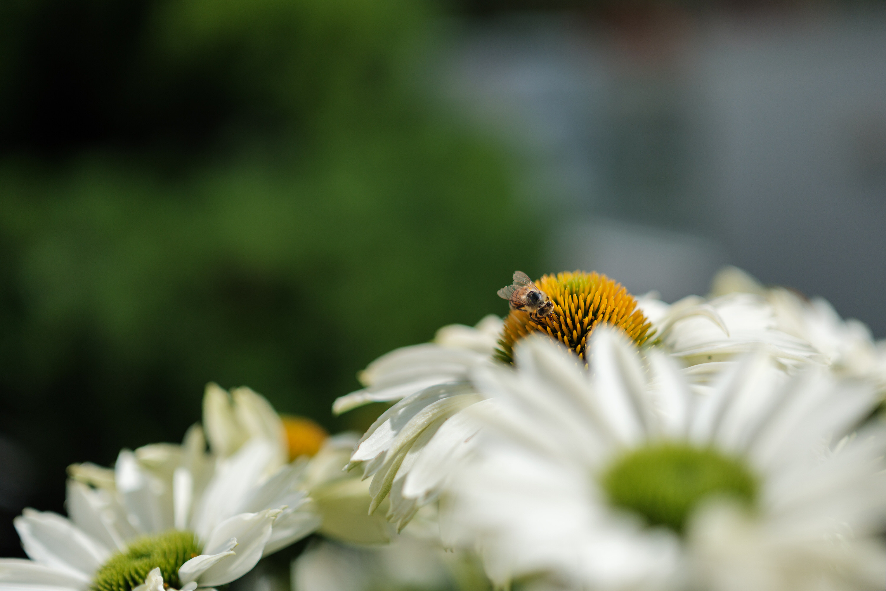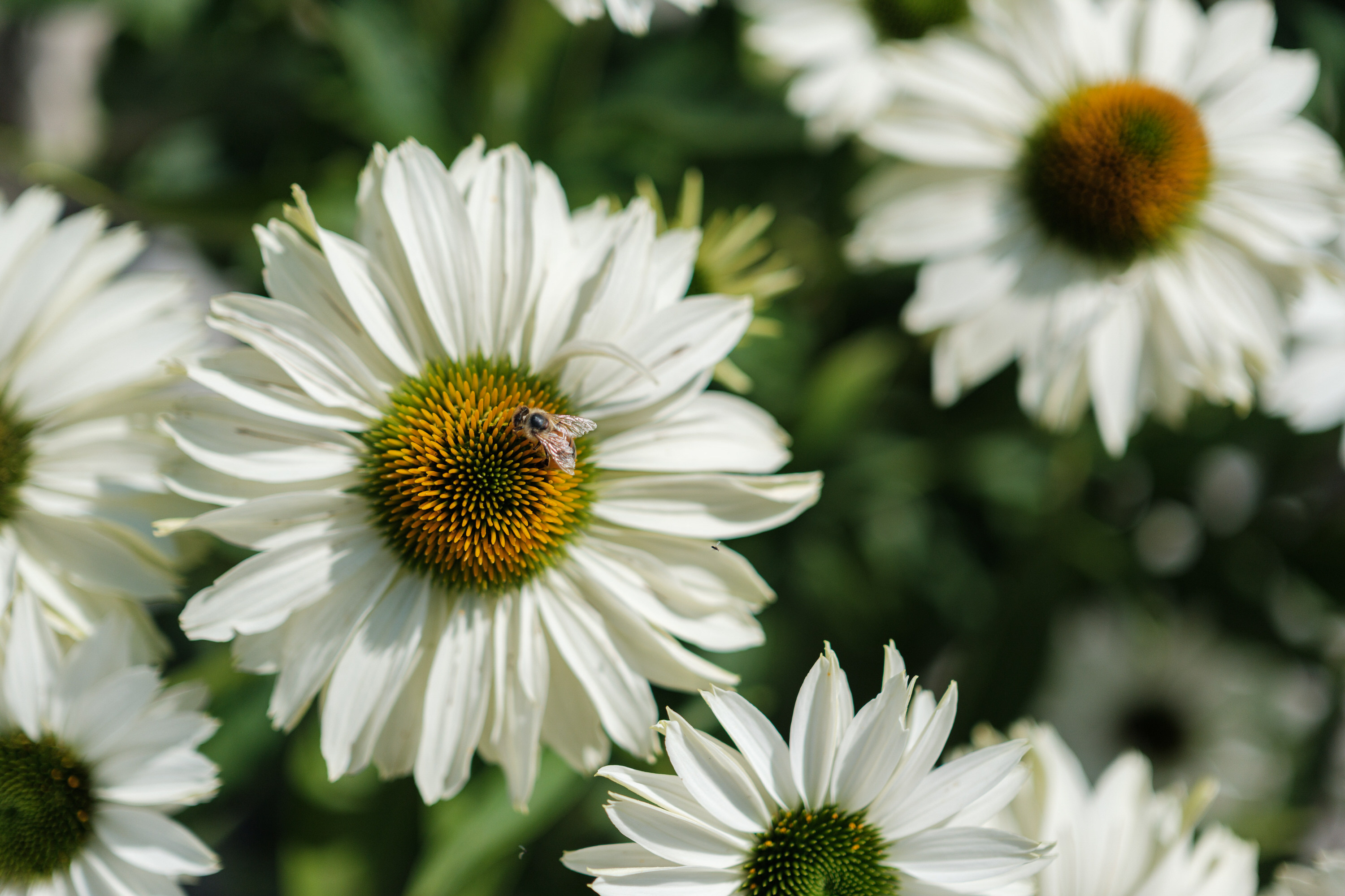 Weiße Rosen, Hortensien und weißer Sonnenhut