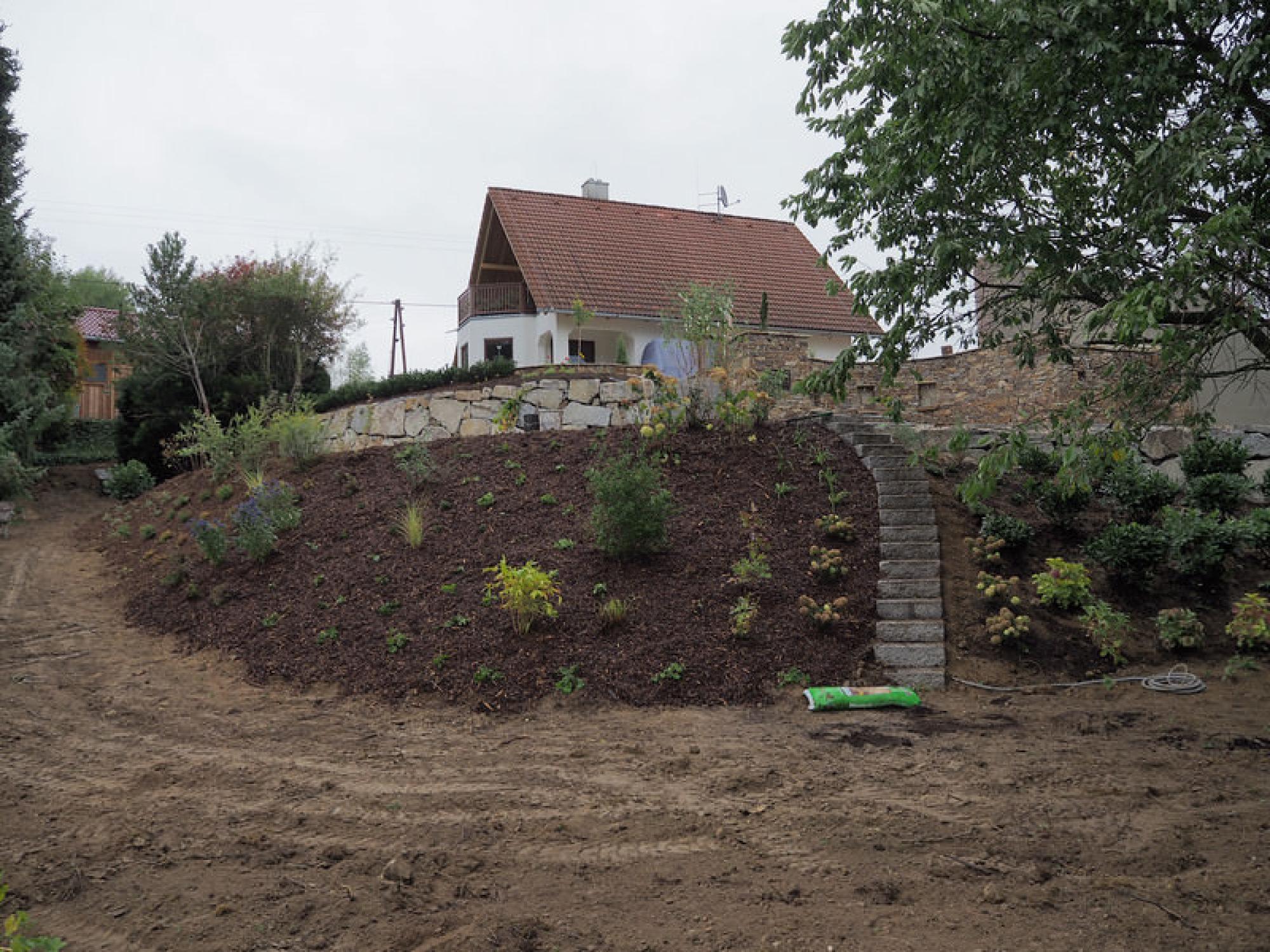 Die größten Herausforderungen waren sicher die Erdarbeiten und die Gestaltung der Zwischenterrasse im mittleren Gartenbereich. Denn im Grunde wussten wir nie, was der Bagger vorfinden würde, wenn er mal hineingegraben hatte.