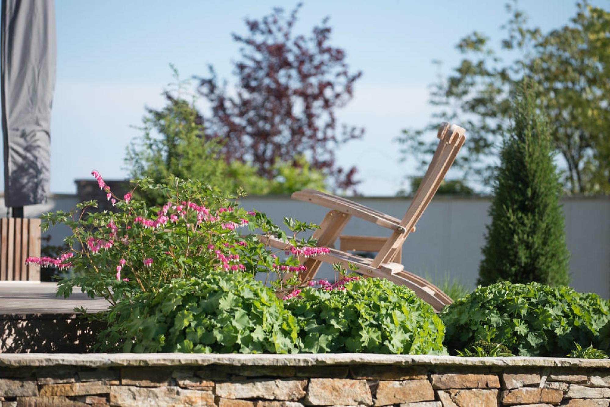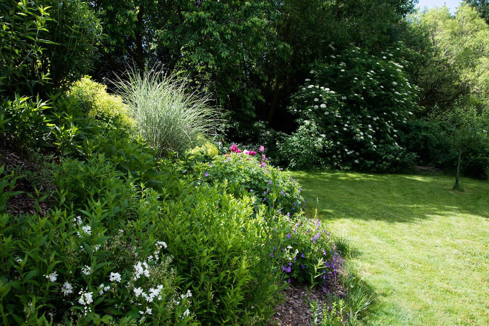 Die, aus optischen Gründen gefürchtete Lärmschutzmauer Richtung Straße, fand sich im Plan als attraktiver englischer „Walled Garden“ wieder. In Richtung des landwirtschaftlich genutzten Nachbargrundstücks hingegen, öffnete sich der Garten und integrierte optisch das Naturareal – ganz ohne Zaun. Ein Akzent, den wir aus der englischen Gartengestaltung kennen und schätzen.