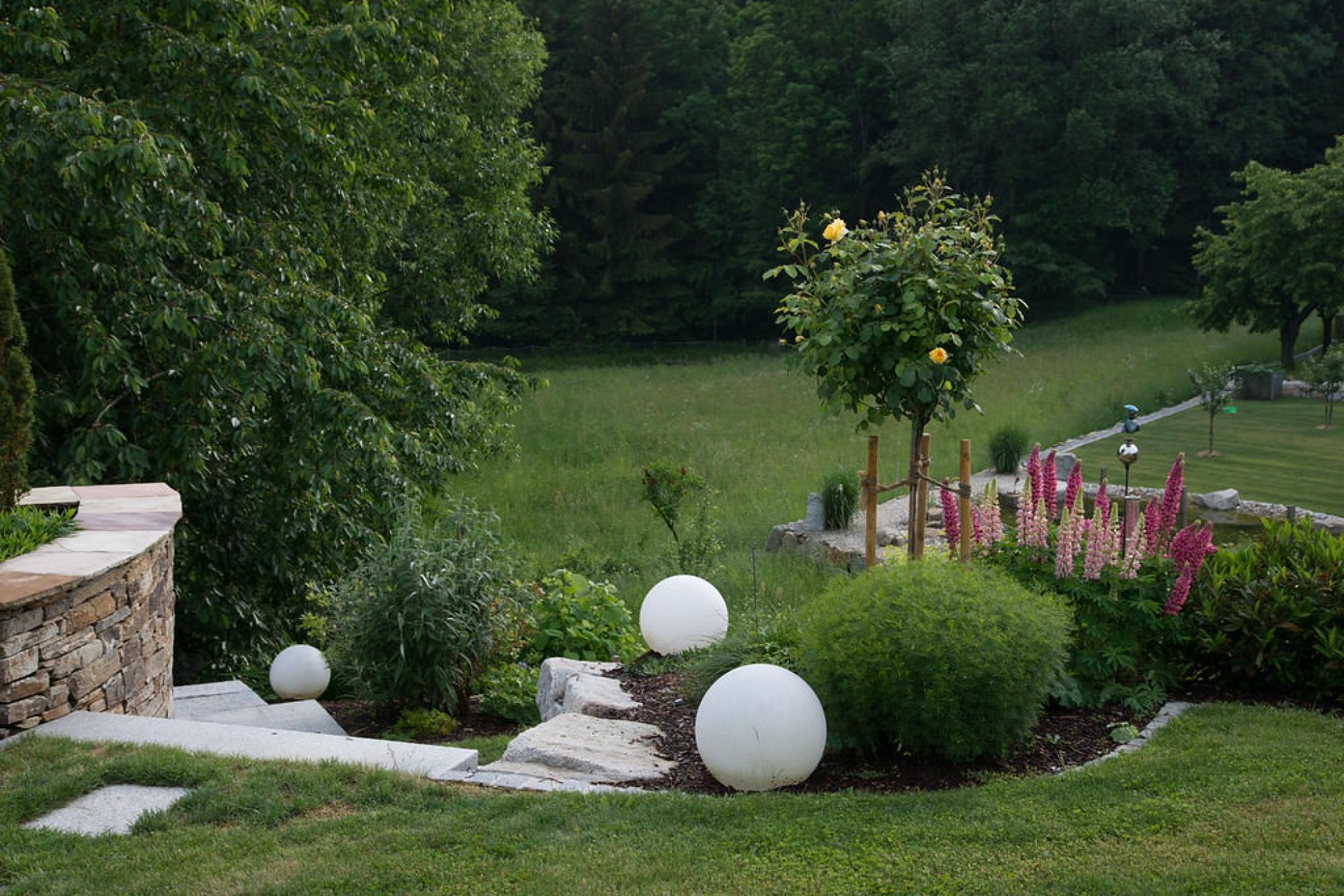 Wichtig war uns auch, dass der Garten naturnah gestaltet wird und die große Fläche für Nutz-, Zier- und Erholungsräume genutzt wird. Unser Faible für Englische Rosen kam in der Planung ebenfalls nicht zu kurz und auch eine ansprechende Ambiente-Beleuchtung war ein großer Wunsch.