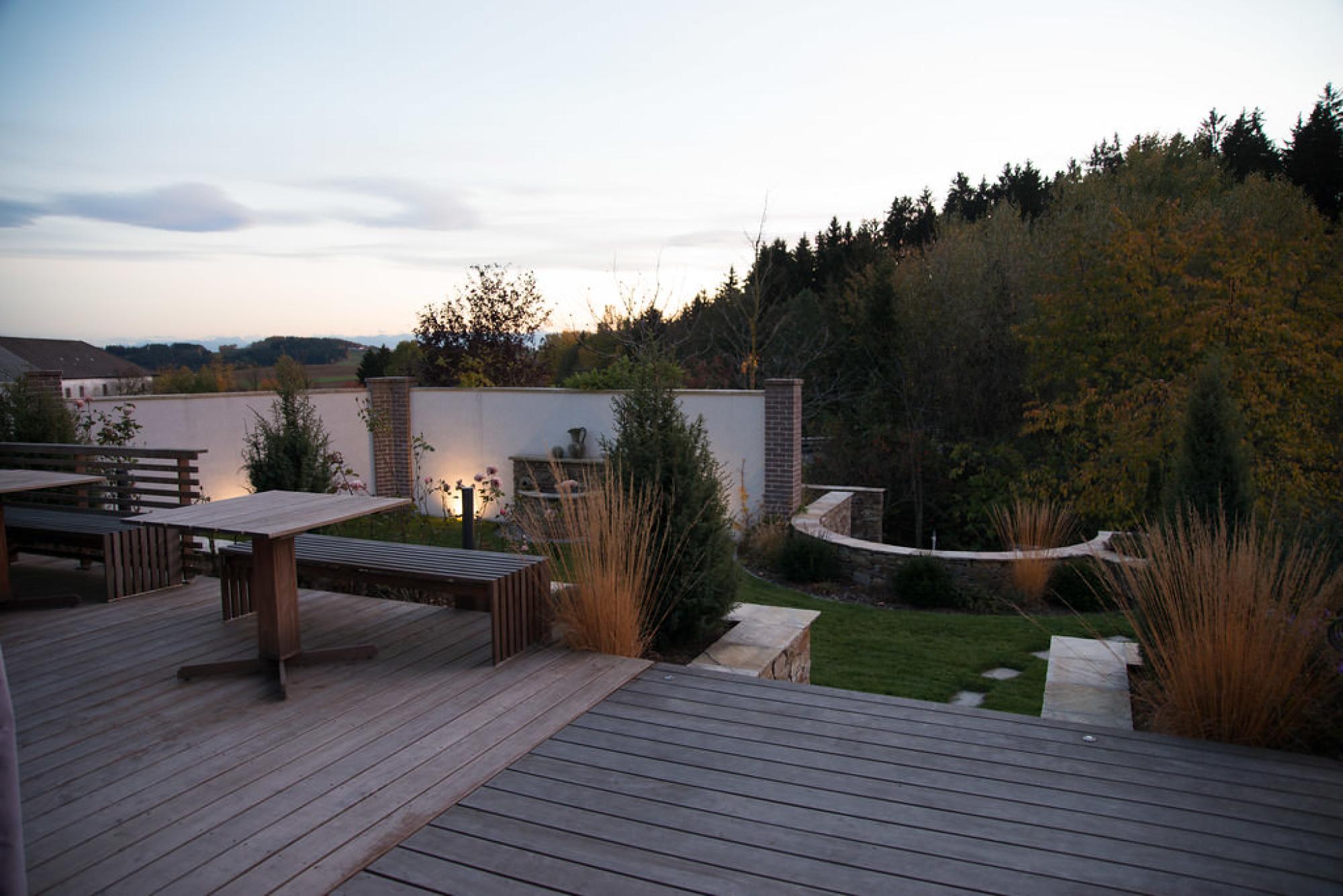 Dazwischen wurde im Plan eine Ebene terrassiert, die einen neuen, geschützten Sitzbereich mit mediterranem Mühlviertler-Charakter zeigte. Dieser erste Plan wurde – mit nur geringen Adaptionen – zur Umsetzung beauftragt.